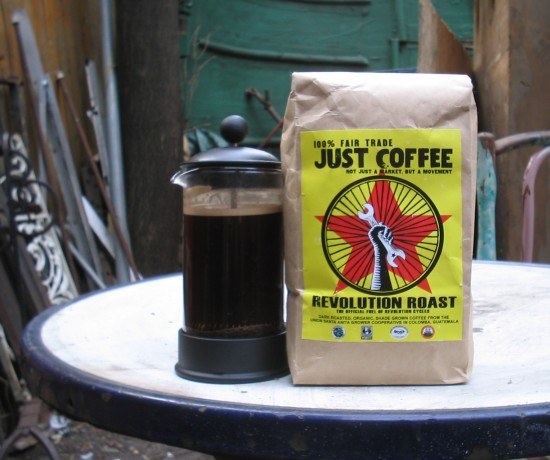 In the middle of the country, there's Just Coffee, especially their "Revolution Roast." (Gee, two of my favorite coffees are revolution-themed. Go figure.) Further east, there's Gorilla Coffee, which is Brooklyn-roasted, just like me! Also of note is a really strong roast of Nicaraguan coffee, provided by Equal Exchange, based in New England. My love of coffee started with drinking this at activists events in support of independence movements in Latin America.