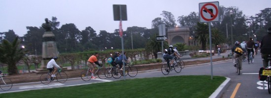 We got as far west as we could: Ocean Beach. It was then, and only then, that we realized we had no means of making a bonfire. If we'd each brought one piece of firewood apiece, we'd be keeping toasty. Instead, we drifted back home in smaller groups -- a nice ride back through the park for some of us.